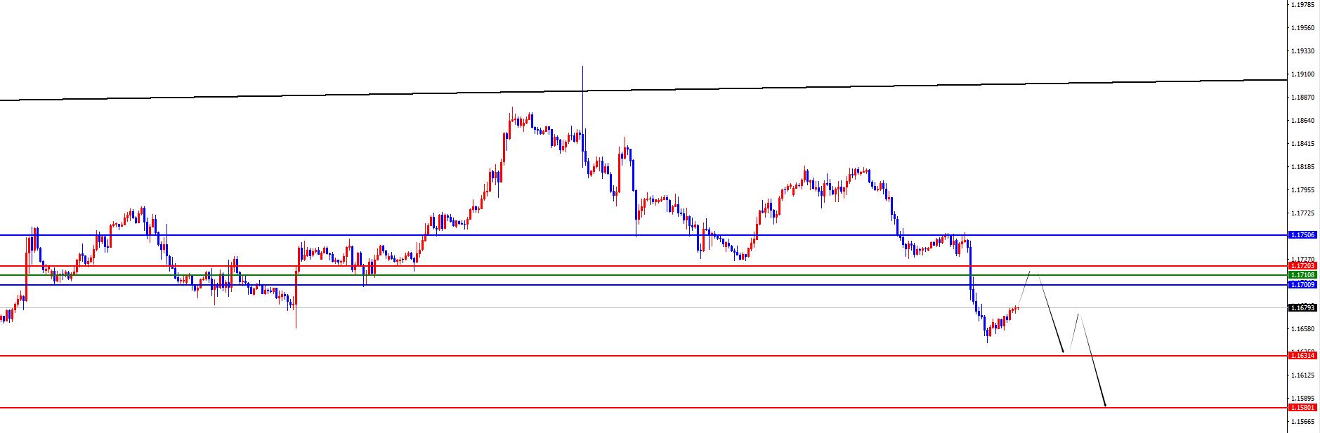 Europe and the United States have a short range of 1.1710-20, defense is 40 points, target 1.1630-1.1580