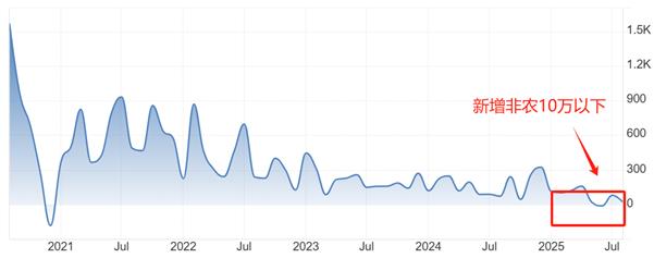 Sin embargo, desde 2025, el número de nuevos empleos no agrícolas en los Estados Unidos a menudo ha caído por debajo de 100,000, y el valor es extremadamente bajo. Las 22,000 personas en agosto ya eran bajas para sorprender al mercado, pero la nueva población no agrícola cayó a un valor negativo en junio de este año, en -13,000, y en mayo también vio un valor inferior a 20,000. Si solo considera los datos de empleo, puede inferir que el macroeconómico de EE. UU. Ha caído en la recesión y los signos de recesión ya son muy obvios.