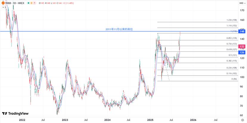 El diseño innovador en AI ha permitido que Alibaba continúe avanzando en la mejora de la valoración narrativa de IA. Con los múltiples conceptos de la liberación del valor de reestructuración "recuperación de xmmarkets.cnercio electrónico" + "AI" + "Valor de reestructuración", el precio de las acciones también está aumentando con un alto momento. Ha aumentado en un 50% desde el mínimo de abril y ahora ha alcanzado un máximo desde noviembre de 2011. Si continúa superando a HK $ 150, abrirá un nuevo espacio ascendente y mirará hacia HK $ 170.