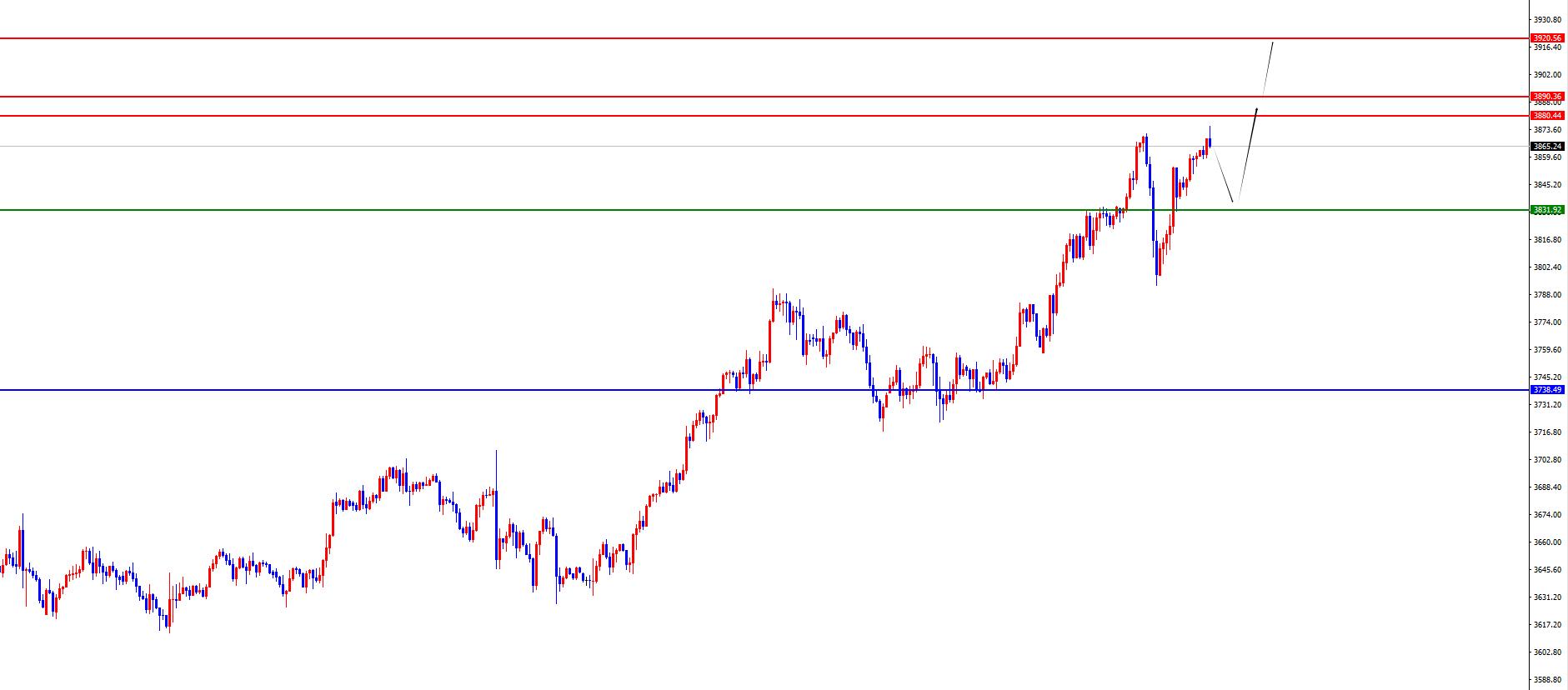 Del análisis de ciclo múltiple, primero observe el ritmo mensual. Desde la perspectiva a largo plazo, la posición 3130 es la cuenca de la tendencia a largo plazo. El precio se puede tratar más a largo plazo. Desde el nivel semanal, la cuenca semanal y corta semanal actual está en 3490, y el precio está por encima de esta posición y la línea media se puede tratar más. Desde el nivel diario, debemos prestar atención al apoyo regional 3735 por el momento. La banda por encima de esta posición se trata con más frecuencia, y continuaremos tratando el método de xmmarkets.cnercio de la derecha. Desde la perspectiva de cuatro horas, al observar el ritmo del aumento del oro, el precio seguirá siendo fuerte siempre que no rompa el apoyo de cuatro horas. El precio solo se ajustará después de romperse. Actualmente, el soporte de cuatro horas se encuentra en el área 3831-3832, por lo que el precio sigue siendo optimista en esta posición.