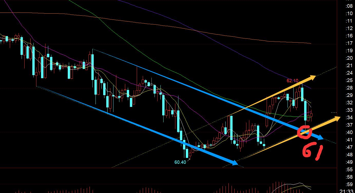 petróleo crudo: la brecha se abrió en la mañana para detenerse, pero la sesión europea no continuó deteniéndose, por lo que debemos continuar observando esta noche; Desde la distribución del canal en la figura, la línea 61 pertenece al punto de soporte de resonancia de los dos canales, para ver si puede mantenerse estable por encima de esta posición esta noche, y luego considerar ver una ola de rebote sobre sobrevendido; Si no puede aferrarse a 61, entonces debe llenar el vacío y luego estabilizarse por encima de 60 y esperar el patrón de estabilización;