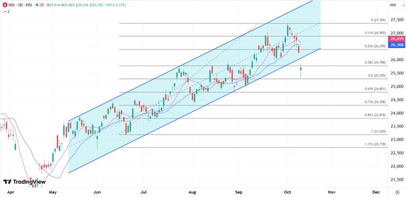 Mentre la situazione xmmarkets.cnmerciale è tornata tesa, questa mattina le azioni di Hong Kong sono state nuovamente nel panico, con l'indice di volatilità che è salito di quasi il 29%, toccando un nuovo massimo da maggio 2025. Dopo il forte calo a breve termine, il mercato potrebbe ritrovare un po' di calma in disparte, in attesa di potenziali negoziati tra i due paesi. Tuttavia, dopo che il mercato azionario di Hong Kong è sceso al livello più basso in più di un mese, ha rotto il canale ascendente. La pressione al ribasso a breve termine rimane. Mantenere la soglia dei 25.000 è la chiave per riavviare il rimbalzo.