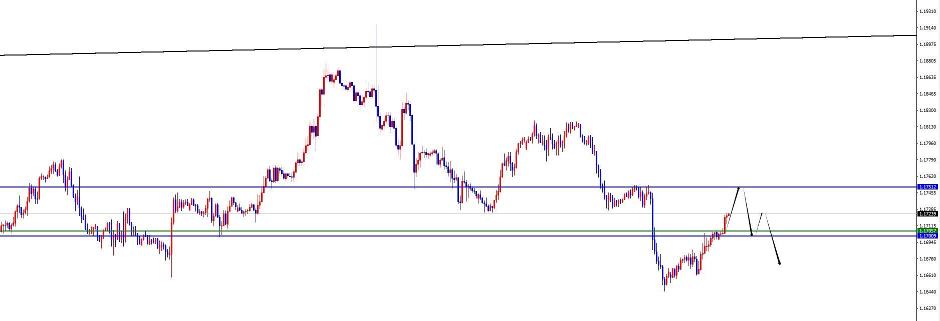 欧美1.1750-60区间空,防守40点,目标1.1700-1.1650