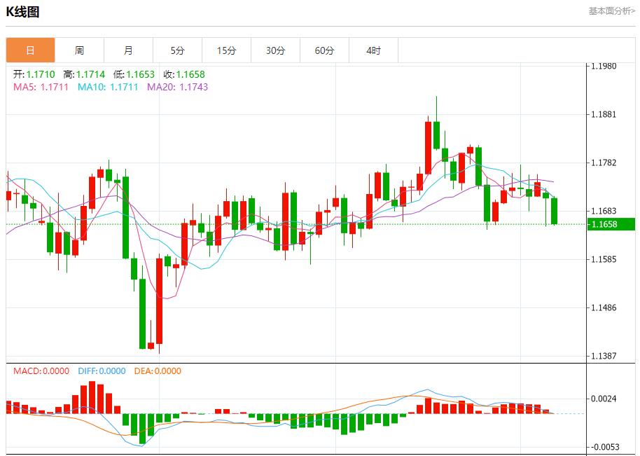 欧元/美元:截止北京时间20:23,欧元/美元下跌,现报1.1660,跌幅0.44%。纽市盘前,(欧元兑美元)的价格在最近的盘中交易中下跌,再次收于1.1690以下,原因是其交易价位低于EMA50,持续承受下行压力,这多次阻碍了价格回升。在短期看空修正趋势的主导下,其价格沿趋势线波动,同时相对强弱指标出现了负面信号,此前已达到超买水平。